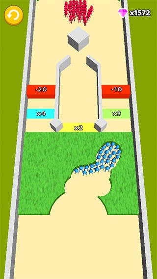 4、建立好小兵军队就可以开始对拼了,我们需要点开障碍让小兵战斗,每一个蓝色小兵会抵消一个红色小兵;