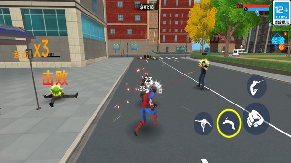 2、主角能力超凡:扮演超能小子拥有飞檐走壁技能,能穿梭高楼之间,让操作更立体,玩法节奏更具速度感与打击爽感。