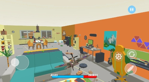 3、玩家需要在战斗中躲避家具等障碍物,消灭敌人,最终获得胜利。