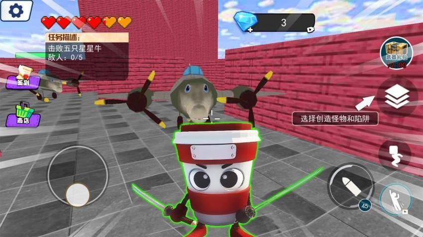 4、全新进化升级:击败敌人可获得成长效果,推动卡布奇诺忍者完成起源进化,解锁新能力。