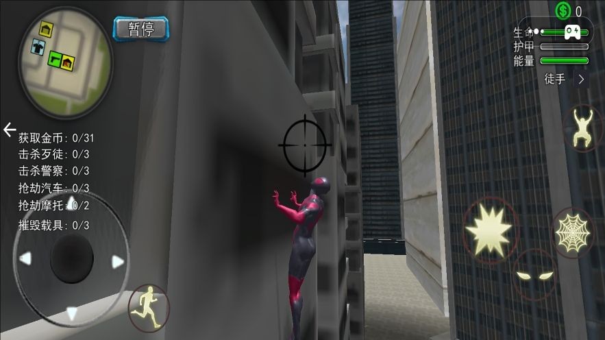 1、利用蜘蛛绳索在城市建筑间快速移动,实现高空摆荡与垂直攀爬,还原超级英雄的灵活身手。