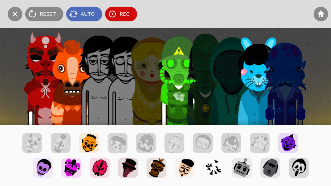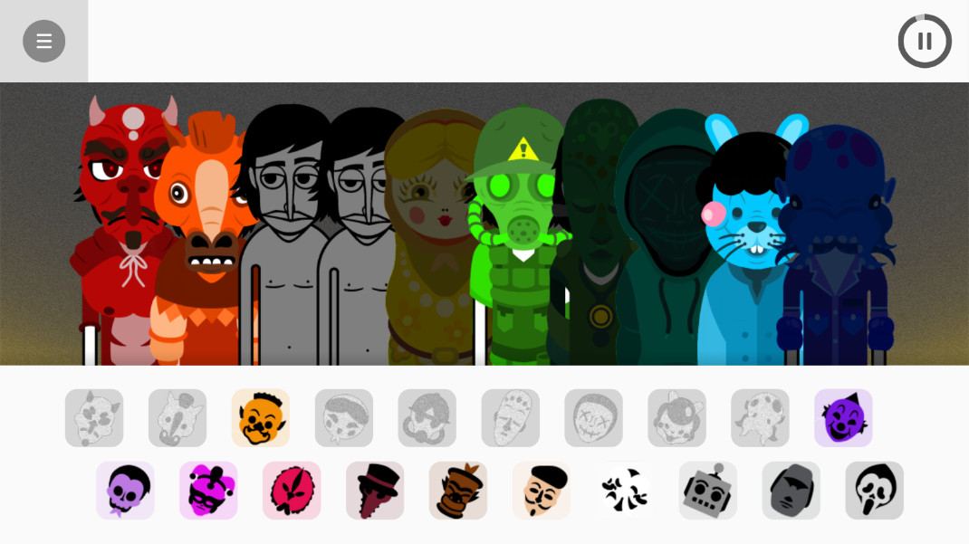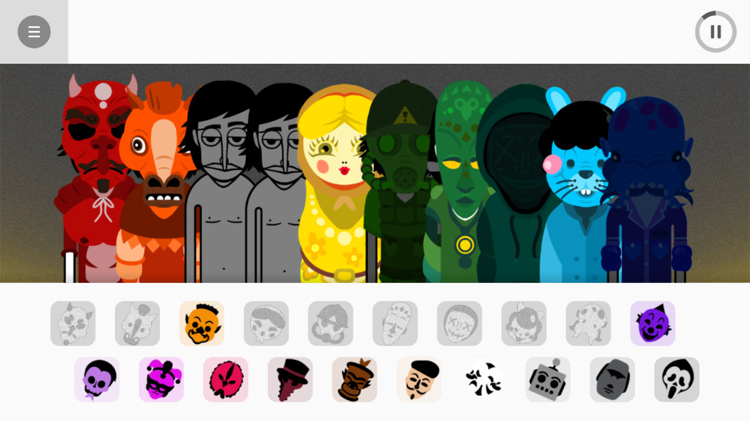 节奏盒子TheMasks,中文名称翻译为古怪的面具,比较休闲的音乐混音游戏,游戏操作简单,玩家只需要将代表不同声音的各种符号拖动到小人身上,便会混合出节奏感超强的各种音乐。