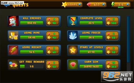 完成每个等级后你将获得宝石和金币,每个等级后奖励将增加,