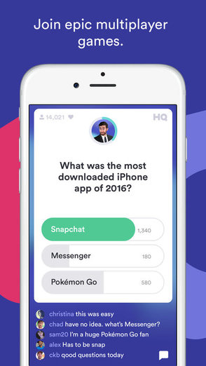 HQ Trivia是最受欢迎的百科知识竞答软件,在不久的将来一定会风靡全球。玩家在一场在线直播百科知识竞答中竞争真实奖金,你的PayPal账户会有奖金直接到账。你只需在一天中具体时间内(有两个日常测试)登入这个软件然后开始游戏。确保在游戏开始时你开通了软件账户,否则你会被拒之门外。