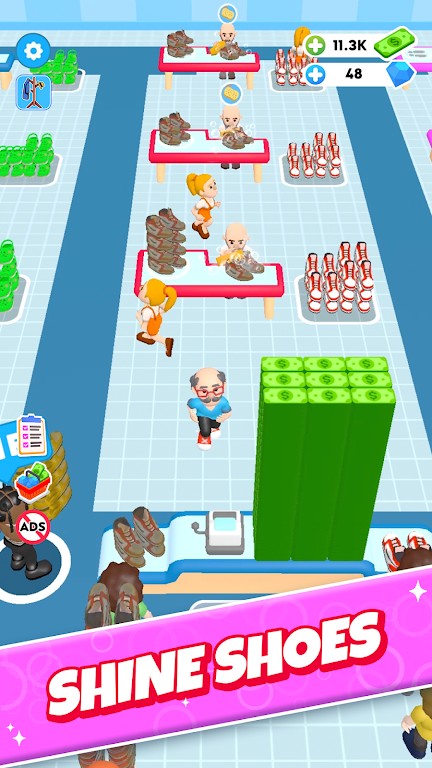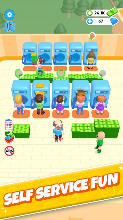 3、可以自由装饰自己的洗衣店,雇佣员工,体验精彩玩法。
