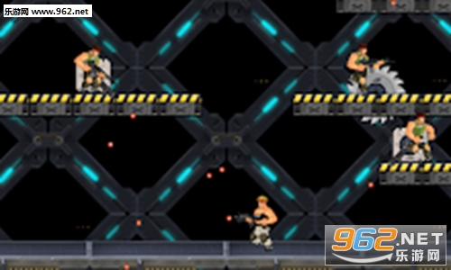 1、在侧视阶段,玩家可以在站立时向左,向右或向上射击,也可以在跑步时水平和对角射击。玩家还可以在跳跃时向八个方向中的任何一个方向射击,包括向下射击。站立时向下按下操纵杆会使角色躺在他的肚子上,让他避免敌人射击并射击低射目标。当蹲在较高的平台上时按下跳跃按钮,播放器将下降到较低的水平。