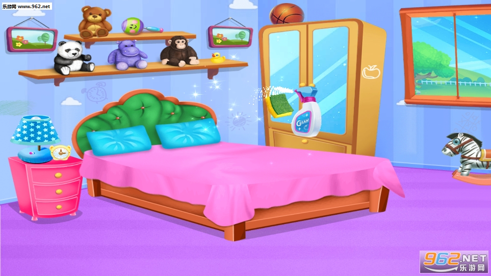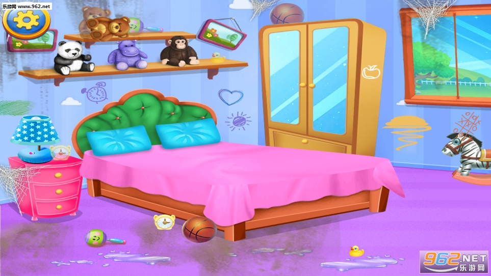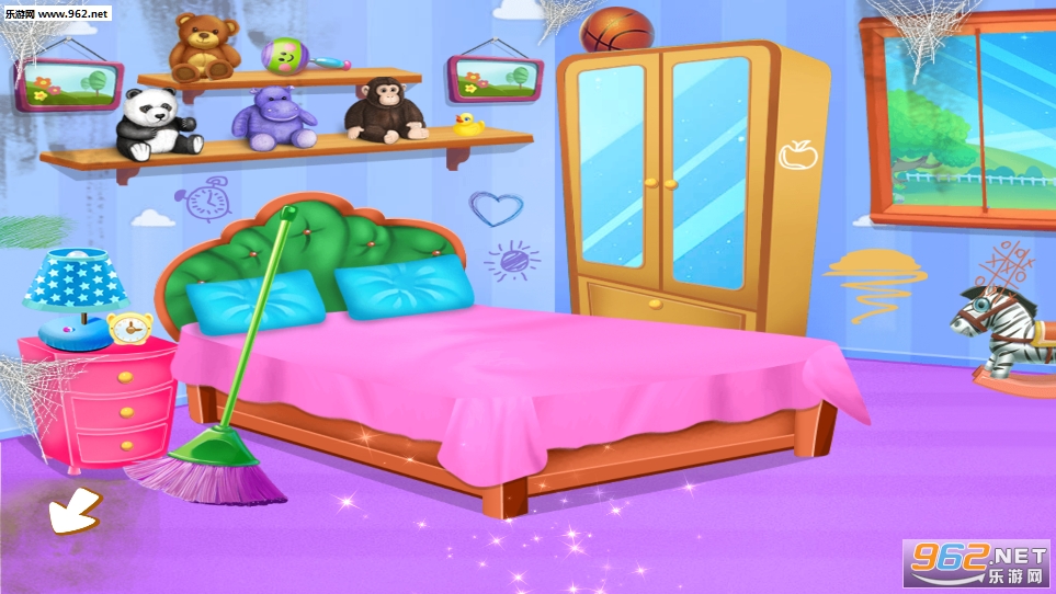 *卧室太脏了,让我们把它清理干净。