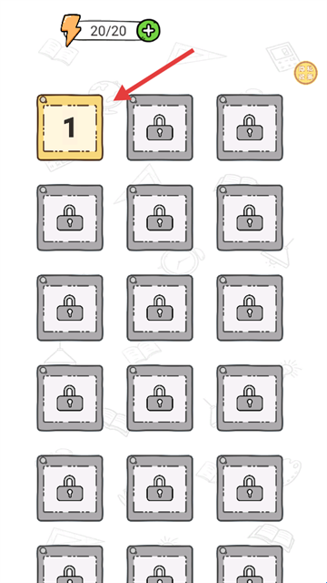 2.选择解锁的【第1关】,进入挑战,准备拼接猫咪图案。