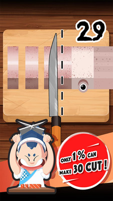 《切生鱼片安卓版》是一款非常考验玩家反应能力的一款游戏,游戏的操作非常的简单,点击开始到出现切割点的时候点击下刀,前期非常的简单,随着游戏的进行,速度将会加快,同时线和线之间的间距也会越来越下,喜欢挑战自我的玩家可以尝试下哦,点点点的操作还非常容易上瘾呢。