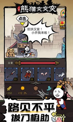 一款指挥熊猫不断突击杀小兵的游戏,当然还有更朵更大的BOSS需要熊猫去去进行对决,恶搞的对决方式充满了魔性,玩家可以在不断的战斗中获得更多的装备和技能,这样就会在战斗的时候释放出来,还可以使用多种武器对决,简直是搞笑极了。