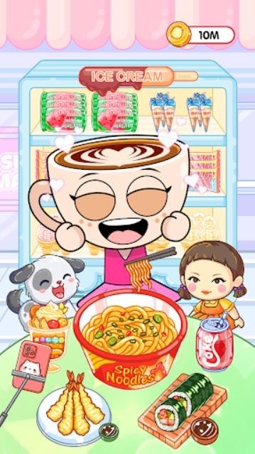 2、购买美味的食物,如辣面条、麻辣烫、越南河粉、牛排等。您可爱的怪兽总是渴望更多!