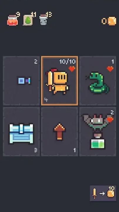 地牢卡牌2游戏是一款卡牌类地牢游戏,游戏采用像素卡通风格打造。游戏内玩家将在九宫格上自由移动自己的角色,在这期间你可以获得各种资源与道具,而且还会与强大的敌人发生战斗。对地牢卡牌2游戏感兴趣的玩家不要错过,赶紧点击下载开始游玩吧。