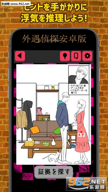 《外遇侦探安卓版》是一款日系侦探恋爱解谜游戏,游戏中玩家扮演一名专门帮人寻找外遇证据的侦探,仔细寻找,不要放过任何一个可疑的线索,气味,语言,动作等等,可能都隐藏着那个人出轨的证据,细心的发现,找出他们的出轨证据吧。