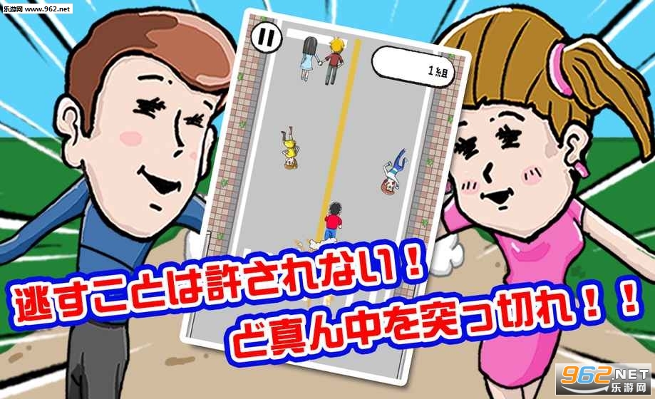 一款卡通画风休闲闯关类游戏,操作简单有趣,玩家在游戏中需要左右的移动,在合适的时间内从牵手的情侣中间跑过进行闯关,适合打发时间,可以下载体验哦!