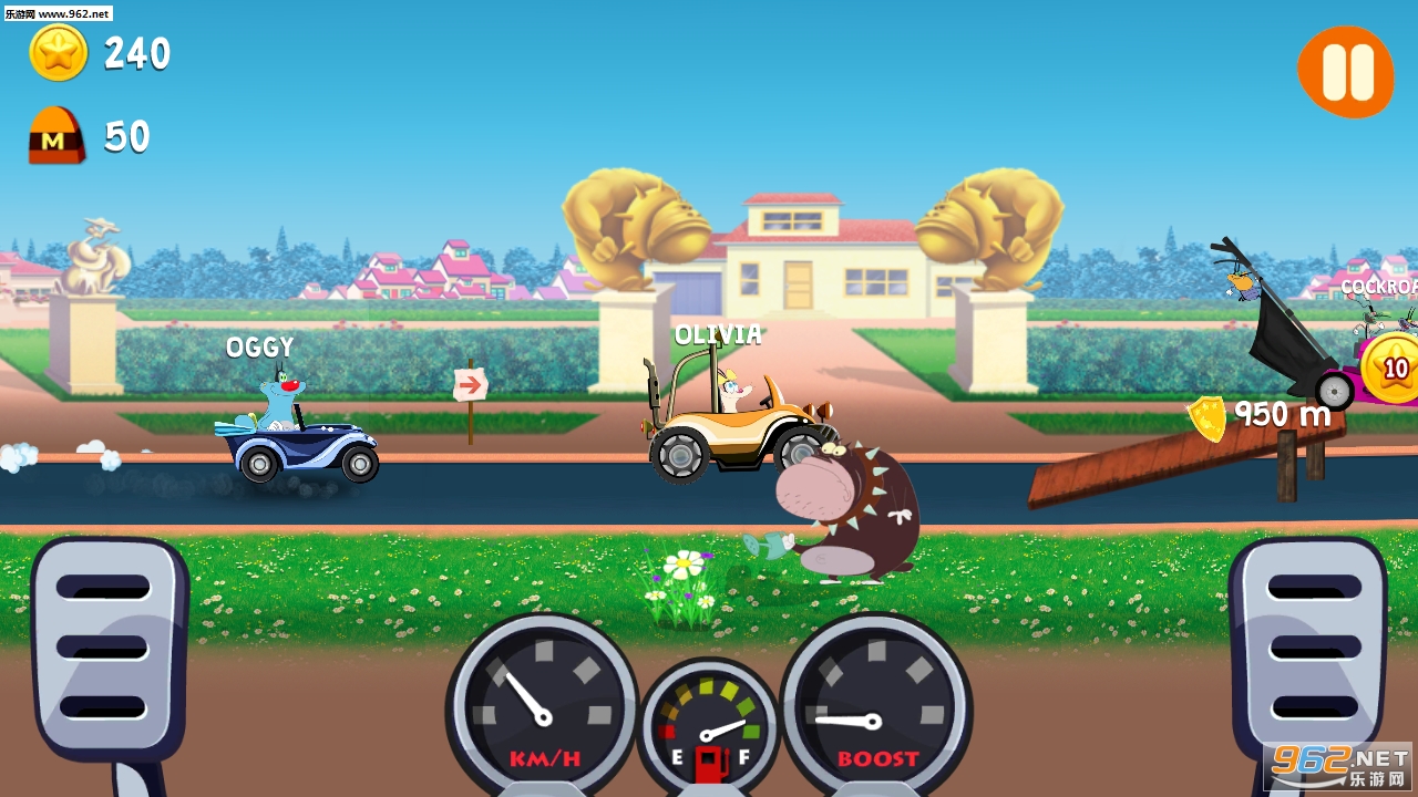 一款好玩有趣的赛车游戏,你可以在这里获得无穷乐趣,在赛道上加速和驾驶,体验难得的悠闲与刺激。但你能和Oggy一起到达终点线吗?马上下载游戏尝试下吧!