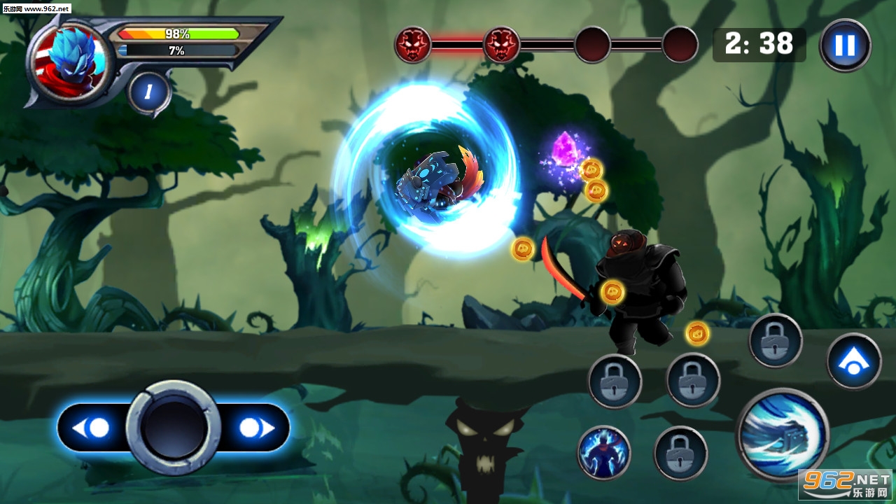 非常不错的动作游戏,小编试玩了一下,开始只有一个技能,通过升级来不断解锁新的技能,可以利用钻石金币来购买宝石道具等,众多强力boss等着你来挑战,喜欢的朋友可以下载试试。