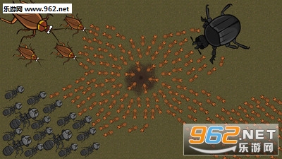 你是一个蚂蚁王国的指挥官,需要让你的子民们大力发展同时抵御其他蚁族的入侵,游戏很有趣的地方在于可以观看地上和地下场景,在地下场景可以扩展地盘,繁殖蚂蚁,在地上场景可以收集食物同时攻击敌人