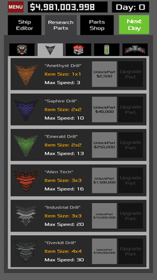 一款休闲挖掘游戏,玩家将去地底下开采,挖的能量越多越好,只到能量能尽就需要第二天再来,你可以升级你的装备和船,虽说是英文,不过不影响体验。