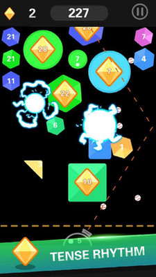 一款非常有趣的益智消除类的游戏,玩家在游戏中需要滑动手指,根据瞄准线去发射小球将方块击碎。