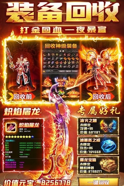 4畅爽打宝,爆率喜人!小怪也能爆永恒!随时随地一键回收!平民也能踏遍整个玛法大陆!