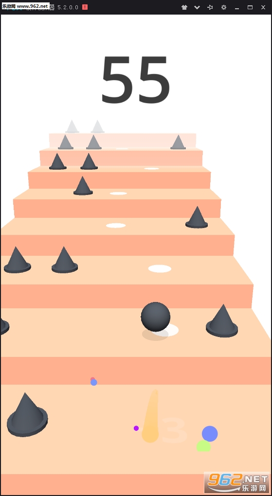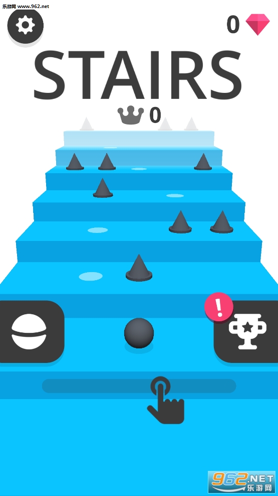 《小球爬楼梯Stairs》是一款魔性的敏捷游戏。在游戏中玩家将要控制一个不断在楼梯上向前跳跃的小球,每一级台阶上都有许多尖刺和一个白色的区域,如果让小球碰到尖刺游戏就将失败,而连续踩到白色的区域则会获得加分并且让楼梯转变出奇妙的颜色哦!