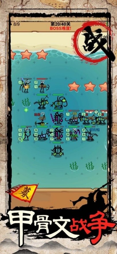 甲骨文战争游戏整个游戏玩法是非常新颖的,将古老的甲骨文融入到策略游戏游戏中,仿佛给所有文字赋予了新的生命,玩家们在这里将和甲骨文战士们一起来完成这次对战,制定完美的作战部署,排兵布阵,积极迎战!一举拿下最终的胜利!
