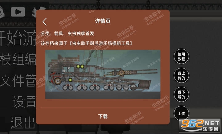 《甜瓜游乐场》是一款像素风格的自由模拟手游,玩家可以解锁各种人物、武器、载具等来模拟不同的场景,可以下载游戏中的各种模组进行体验。