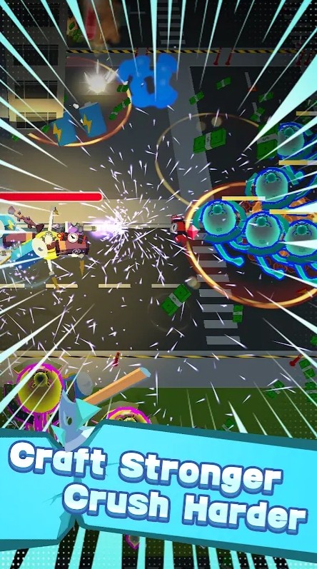 2.摧毁建筑物和敌方单位,以获得包含近战刀片.激光炮和其他重型火炮模块的随机武器箱。