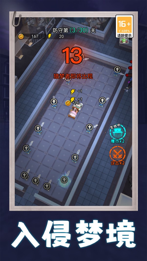 1、这是一款紧张又烧脑的塔防类游戏,你将被困在一个被恶灵包围的房间中。