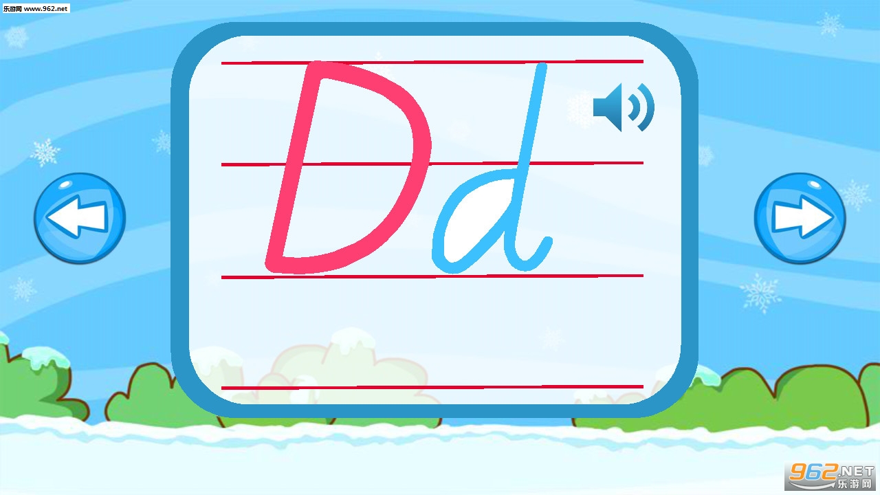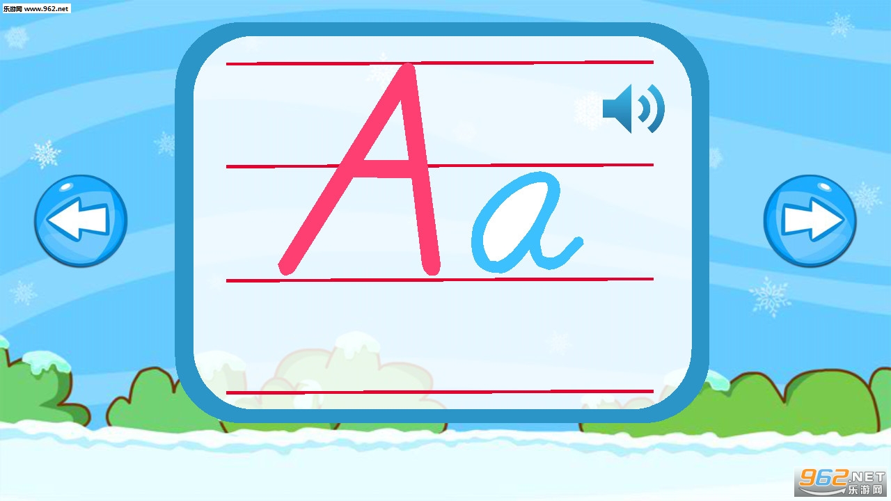 非常不错的英文字母学习工具,软件的解谜非常的清新简洁,大大的一个字母占满屏幕,让宝宝记忆更加的深刻,可以点击旁边的音量键发音,有需要的朋友可以下载试试。