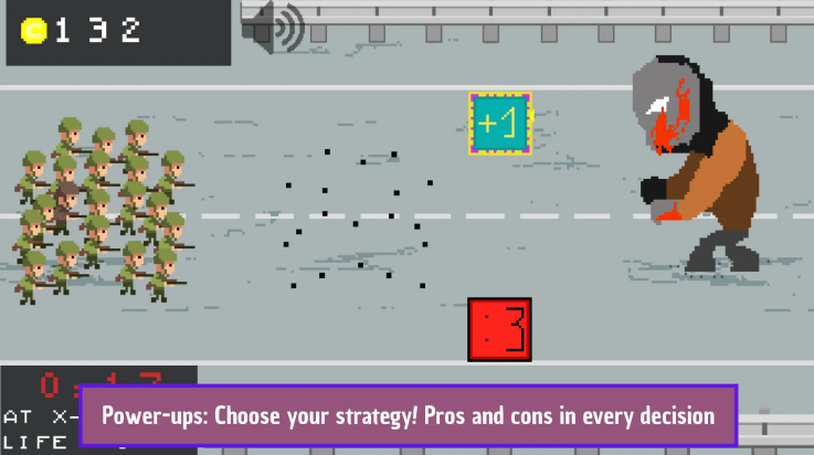 3、控制与风险:小军队:只有很少的士兵,你可以将自己放置在中间,以躲避不需要的能量提升,并且不会收集任何能量。庞大的军队:庞大的军队可以主宰战斗!如果你有很多士兵,你将能够同时收集两种能量提升,但要小心:如果你将自己定位在中心,你将无法躲避负面能量提升,并且将被迫收集至少一个。