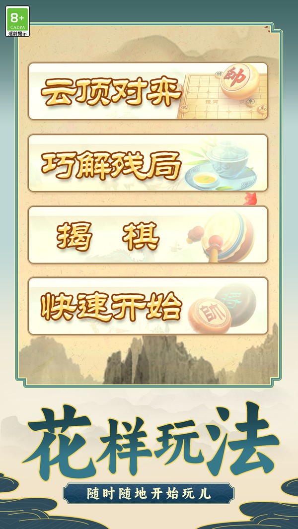 2、棋子种类丰富,走法各异,让你在方寸之间体验策略与智慧的较量。