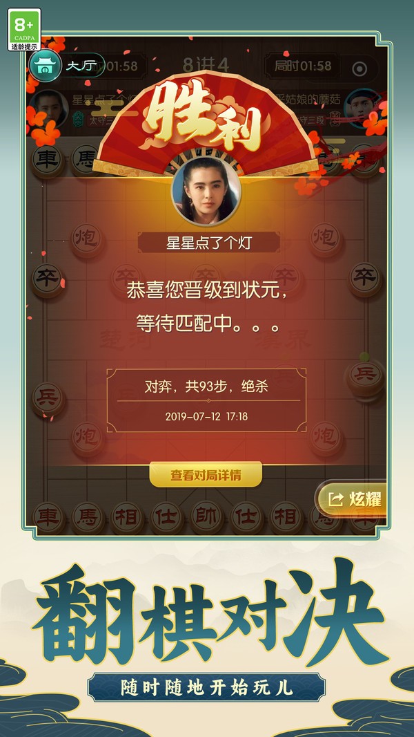 3、复盘分析功能:每局结束后,系统自动保存棋谱,支持复盘分析,帮助您总结经验,提升棋艺。