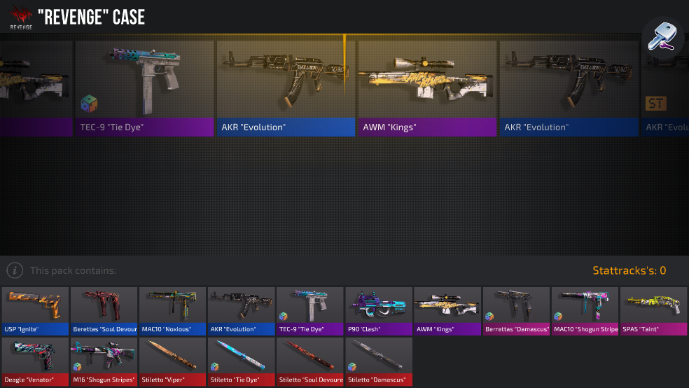 1.每开一次盲盒,都会得到各种道具和皮肤,遇到不需要的武器还能够进行售卖。