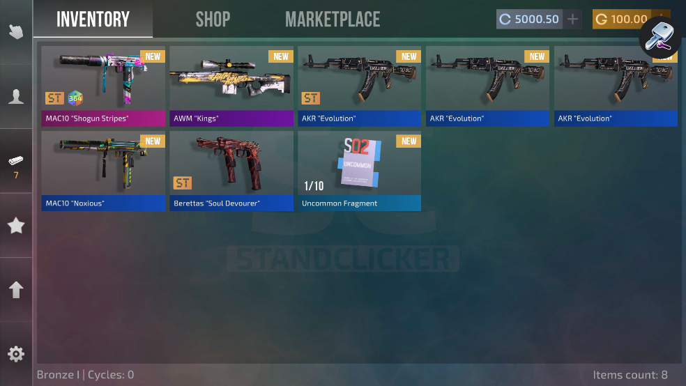 站立点击器Clicker 2是一款模拟开箱的休闲游戏,这款游戏的内容很简单,就是模拟开箱游戏的内容,让玩家在官方正版游戏里体验不到的出金,在这里轻而易举,游戏的操作和简单,选择自己喜欢的武器放进箱子里,然后你就可以开始了,祝你把把出金。