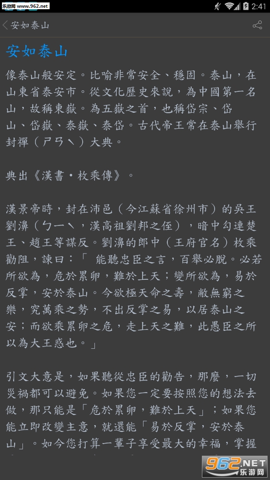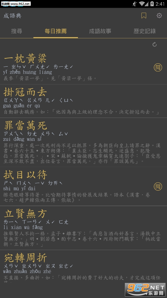 收录了很多经典的成语,用户能够通过它更加了解和成语有关的传统文化,功能也很强大,能够搜索各种有关联的成语,加强用户的记忆。