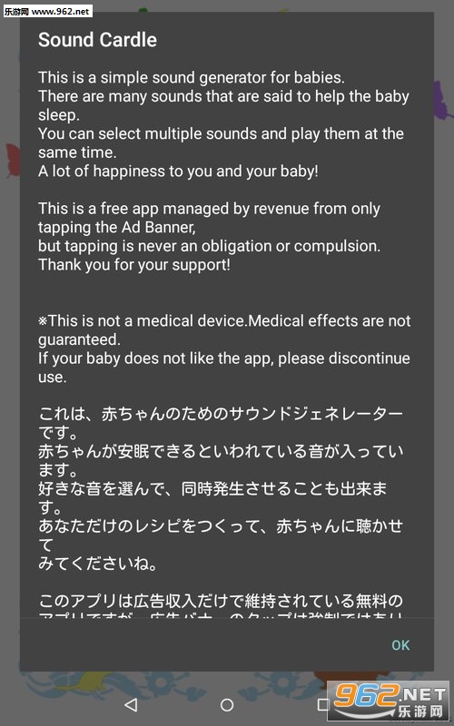 非常不错的助睡软件,孩纸们晚上不想睡觉、孩子哭闹等都可以播放其中的音乐,让宝宝安静下来,让妈妈们变得轻松,有需要的朋友可以下载试试。