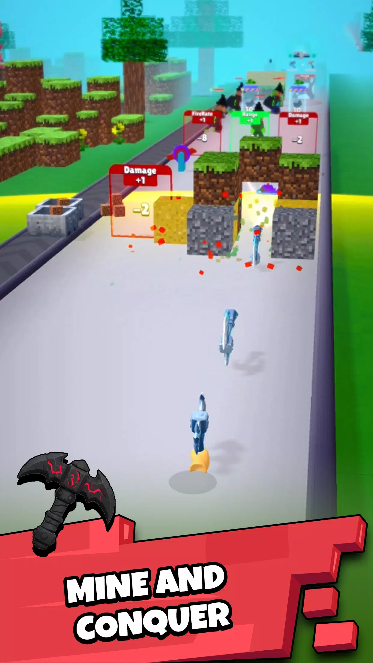 1.玩家只需轻轻滑动屏幕即可控制镐子的投掷方向和力度,轻松粉碎方块。