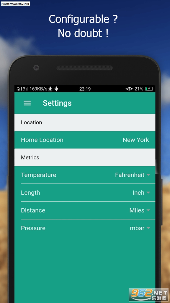 天气气候信息是即时和可配置的(温度,长度,距离,压力)。