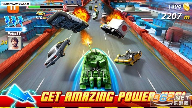 游戏画质还是非常好的,虽然是一款跑酷游戏,但还是非常有趣的,简单的控制系统,你只需要控制赛车左右变道即可,途中有着各种各样的道具,让你加速,飞跃,变成大脚车,非常喜感又非常具有挑战性!