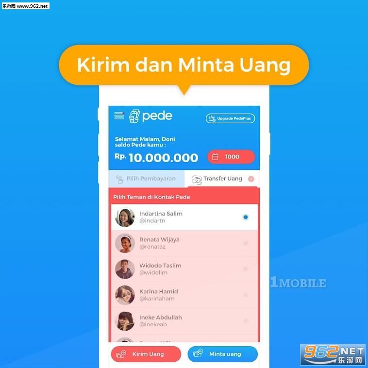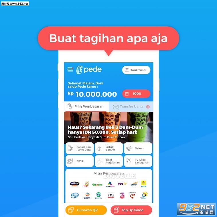 《Pede安卓版》是一个数字应用程序,可用于进行金融交易,如充值预付信贷,支付电费,BPJS,转账给朋友等等。