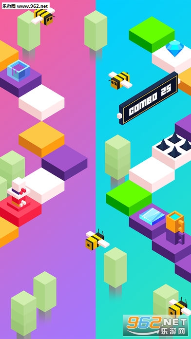 操作方块小人向上跳跃,随时留意颜色变化,或者随机出现的陷阱,你能够获得多少分数?