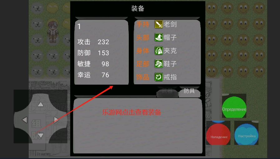 3、点击背包栏,来到人物的装备配置区,按照属性进行防装战斗的搭配。