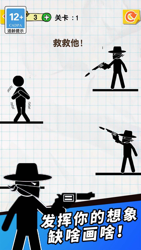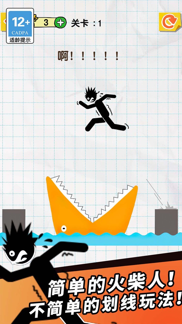 4、这个游戏最大的乐趣在于答案并不唯一,只要可以达到目的,画出任意形状都可以!快来发挥你的聪明才智救救火柴人吧!