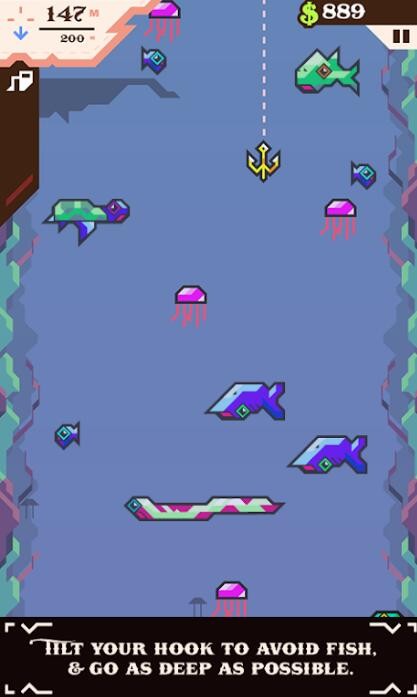 荒谬的钓鱼是一款非常轻松有趣的休闲模拟游戏,这款游戏采用了非常简约卡通的游戏画面,深受玩家们的喜爱,在这款游戏中玩家通过不断的向下垂钓,努力的钓出更多的鱼,极大的增加了有趣的趣味性,通过钓鱼赚取更多的金币,解锁更多的游戏内容,购买更加强力的设备和道具,喜欢钓鱼的玩家一定不要错过。