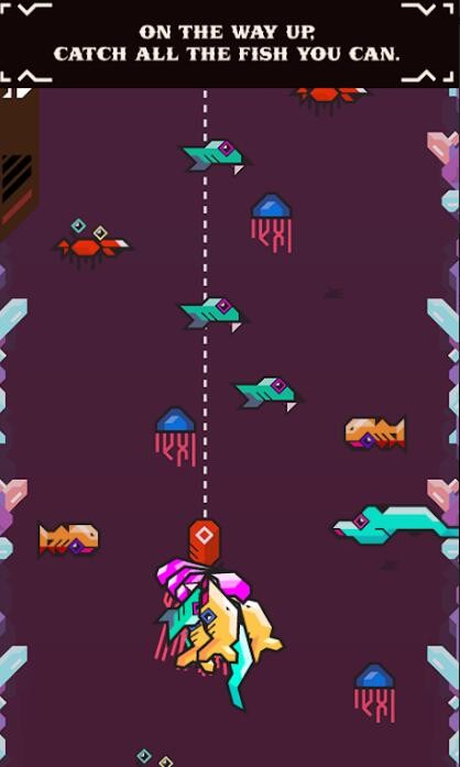 3、钓到游弋的鱼时,鱼钩会停止下潜;