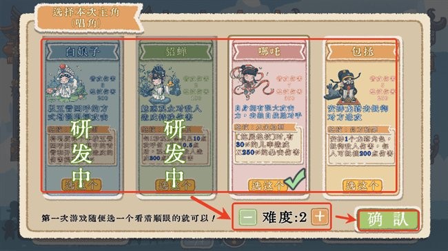 2.选择主角并调整难度后点击确认