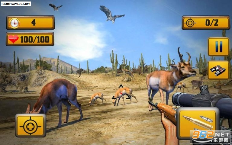 游戏中令人惊叹的声音效果增加了这款3D射击游戏的刺激。通过玩这个3D野生动物射击游戏,成为熟练的鹿和动物猎人。瞄准你的范围并拍摄准确的头部射击,然后愤怒的野兽跳到你面前杀死你。猎杀最危险的野生动物;野生狐狸,鹿和野生动物,野生猪,野兔。