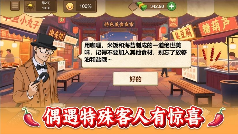 1、独特的街头美食题材,结合经营与烹饪玩法,新颖有趣。