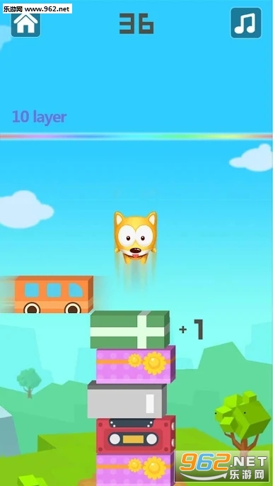 跳天梯:一边跳跃一边堆方块,在跳跃中建造高楼,看看你能建造多少层楼?跳跃过程中被障撞到则游戏结束。方块的出现频率和速度都是未知的,在跳跃中挑战你的手速和反应能力,体验无法预知的刺激!